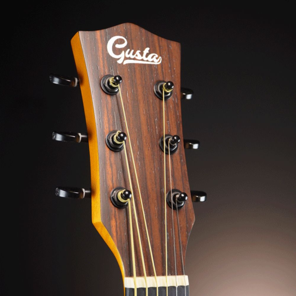 Gusta OM3CE II กีต้าร์โปร่งไฟฟ้าที่เหมาะกับผู้เริ่มต้นในราคาประหยัด หรือคนที่มองหากีต้าร์ราคาย่อมเยาใช้งาน รุ่นนี้จะเป็นทรง OM ที่เหมาะสำหรับคนตัวเล็กหรือผู้หญิง โดยขนาดกีต้าร์จะเป็น 40 นิ้ว เล็กกว่าทรงเดรทน็อตเล็กน้อย ไม้หน้าจะเป็นไม้สปรู๊ซ ให้โทนเสียงใส ย่านเสียงกลางดี ด้านข้างและหลังเป็นไม้โรสวู้ด เป็นไม้หายาก ให้โทนเสียงเบสดีเยี่ยม เพิ่มมิติเสียงกีต้าร์ให้มีความหนานุ่ม ฟังแล้วอบอุ่น จะตีคอร์ดก็ได้ หรือเล่นฟิงเกอร์สไตล์ก็เหมาะ นอกจากนี้ยังได้ภาคไฟฟ้าของทาง Gusta เอง เป็นรุ่นใหม่ที่เสียงมีมิติและจูนเนอร์แม่นยำขึ้นกว่ารุ่นก่อน สามารถปรับ EQ เสียงสูง-ต่ำได้ สามารถเลือกซาวด์ได้ดังใจ กับราคาเบาๆแบบนี้ถ้าได้มาลองเสียงรับรองว่าจะแปลกใจในคุณภาพ งานดี ประกอบเนี๊ยบ เสียงออกงานสบาย