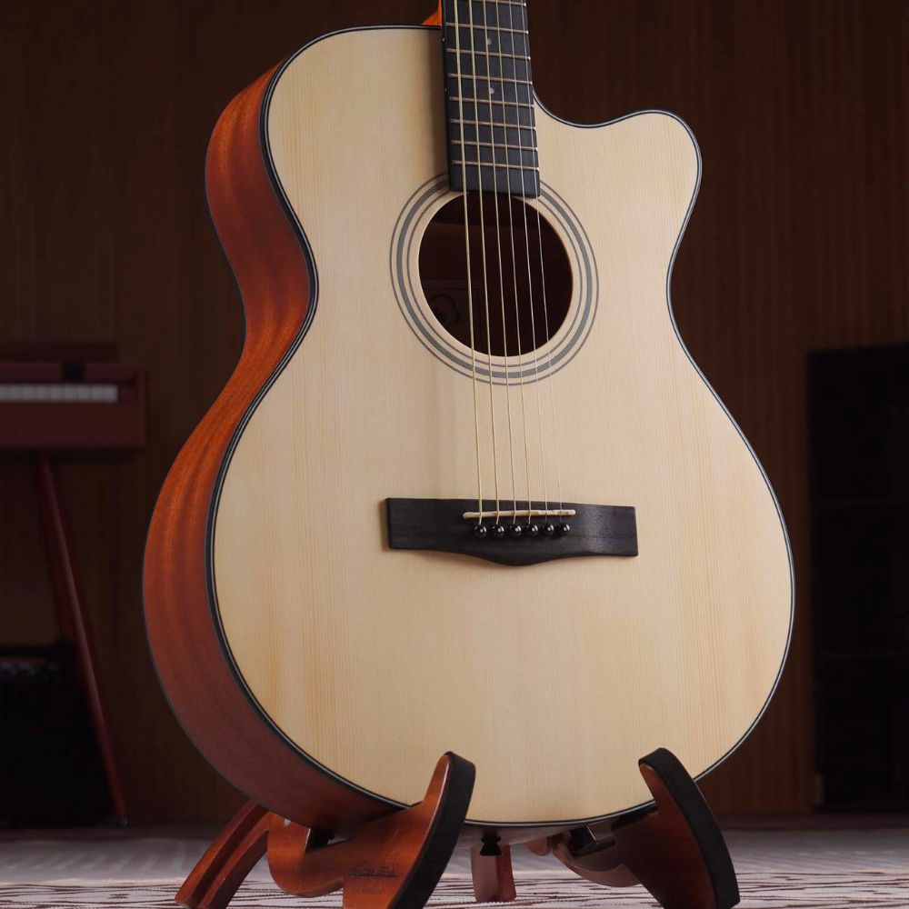 กีต้าร์โปร่ง ทรง OM ขนาด 40นิ้ว รุ่น Gusta OMC (ผิวด้าน) กีต้าร์โปร่งราคาถูก แต่เสียงเกินราคา ซึ่งจะมีขนาดไม่ใหญ่มาก เหมาะกับคนตัวเล็กหรือผู้หญิง สามารถเล่นได้ทั้งตีคอร์ดหรือฟิงเกอร์สไตล์ ผิวสัมผัสแบบด้าน เสียงเปิดๆ ใสๆ ถ้าให้แนะนำสำหรับมือใหม่แล้วถือว่าใช้ประโยชน์ได้ยาวๆเลยครับ รับรองไม่มีคำว่าผิดหวังครับ ตอบโจทย์สำหรับมือใหม่ แน่นอนเลยครับ